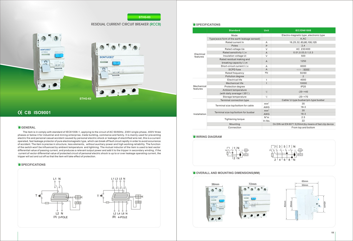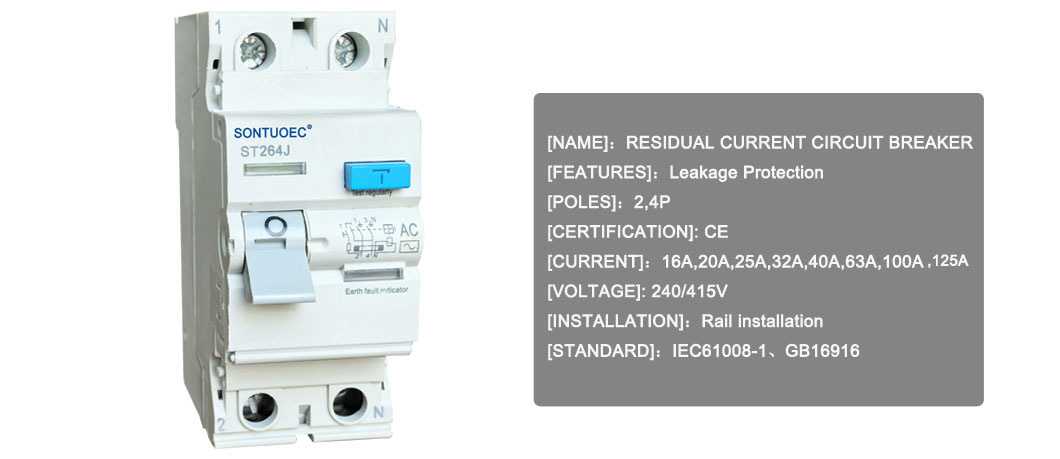 SONTUOEC je jedan od kineskih dobavljača/proizvođača specijaliziranih za proizvodnju raznih malih električnih uređaja ST264J se koristi u AC50 / 60HZ dva pola 230V, četiri pola 400V, nazivne struje do 63A, Može automatski i odmah prekinuti napajanje čim netko pretrpi strujni udar ili struju curenja iznad navedenog . Može učinkovito zaštititi osobnu sigurnost i izbjeći oštećenje opreme. Prekidač strujnog kruga koji radi na zaostalu struju također može funkcionirati kao zaštita od preopterećenja i kratkog spoja te kao nečesta promjena linije u normalnim uvjetima. Proizvod je prikladan za industriju, posao, gradnju, stanovanje itd. Sukladan je sa standardima IEC61008-1.