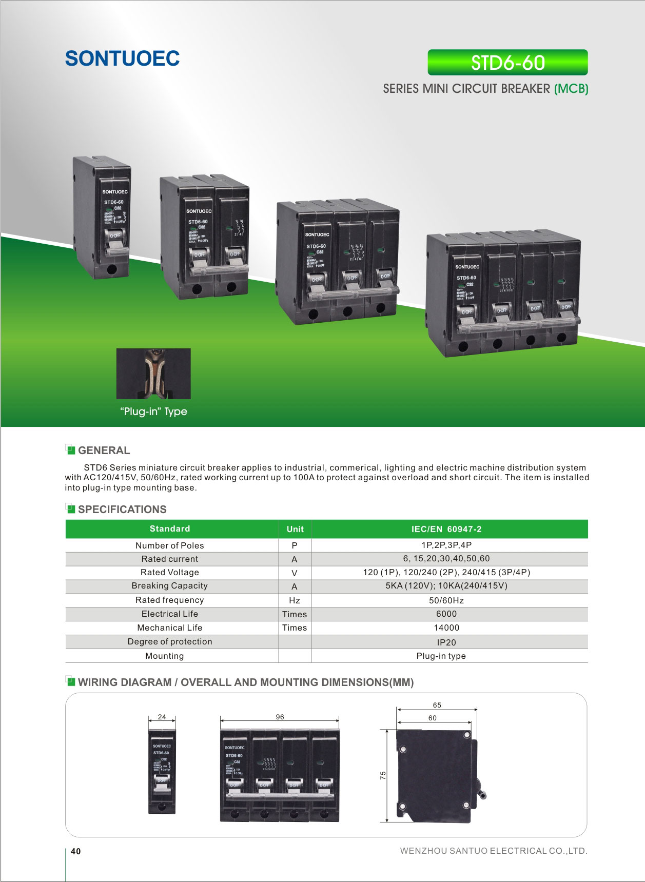 SONTUOEC je jedan od kineskih dobavljača/proizvođača specijaliziranih za proizvodnju Hot Sale Bh Safety Mini Circuit Breaker MCB Cijena 100A i služi za zaštitu od preopterećenja i kratkog spoja koji se koristi u stambenim i industrijskim distribucijskim sustavima. Maksimalna nazivna struja do 63A