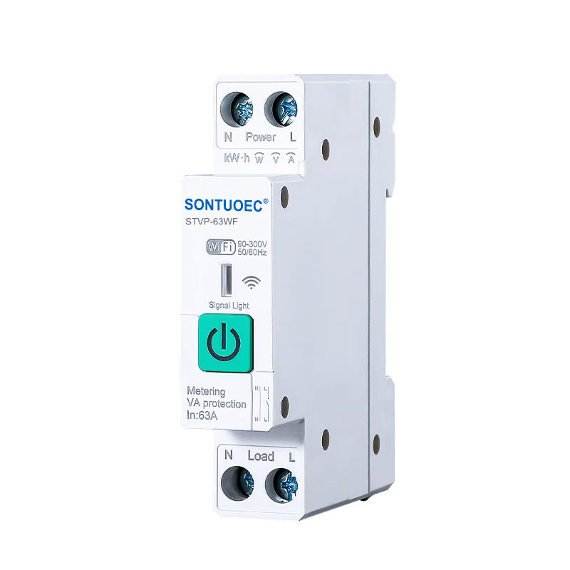 SONTUOEC dobavljač STVP-63WF serija je inteligentni zaštitnik WiFi napona tipa željezničke željeznice koji integrira funkcije kao što su mjerenje energije, inteligentni daljinski upravljač, sigurnosna zaštita, vrijeme, vrijeme daljinskog otvaranja i zatvaranje, mrežna komunikacija itd. Prikladna je za pametne kućne sustave. Korisnici mogu na daljinsko kontrolirati kućanske uređaje putem mobilne aplikacije kako bi postigli personalizirane postavke scene i upravljanje uštedom energije; pripadnost relativno novoj vrsti inteligentnog uređaja također se široko koristi u komercijalnim, uredskim i drugim mjestima, olakšavajući centralizirano i inteligentno nadgledanje električne energije i kontrolu, poboljšavajući učinkovitost upravljanja i zadovoljavanje raznolikih potreba modernog inteligentnog života i rada.