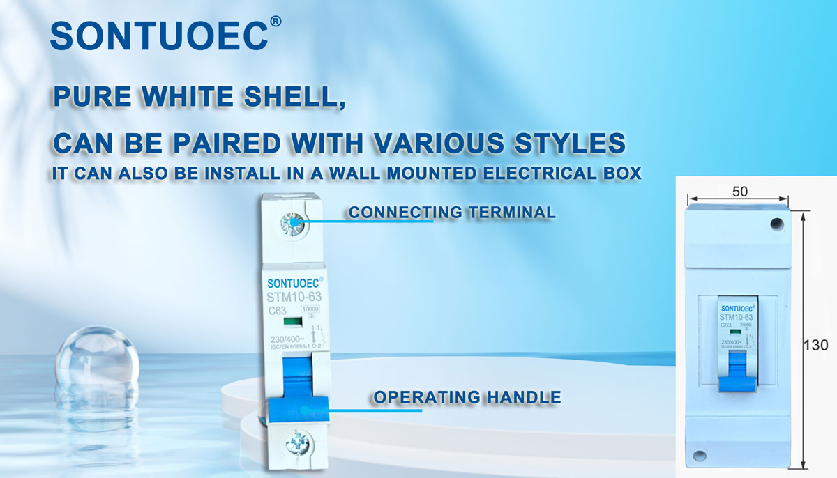SONTUOEC je jedan od kineskih dobavljača/proizvođača specijaliziranih za proizvodnju raznih malih električnih aparata. STM10-63 serija minijaturnih prekidača visoke prekidnosti ima značajke napredne strukture, pouzdanih performansi, visoke prekidne sposobnosti, izgleda elegantno, a njegova ljuska i dijelovi izrađeni su od materijala otpornog na udarce, otpornog na plamen. Pogodan je za sustav napajanja frekvencije 50 ili 60, Ue 400V i niže, Ui 63A i niže. Uglavnom se primjenjuje u poslovnim zgradama, stambenim objektima, za rasvjetu, distribuciju električne energije i zaštitu od preopterećenja i kratkog spoja opreme. Obično se također može koristiti kao nečesti prijenos elektroenergetskog sustava. Sukladan je standardima IEC60898.1 i GB10963.1