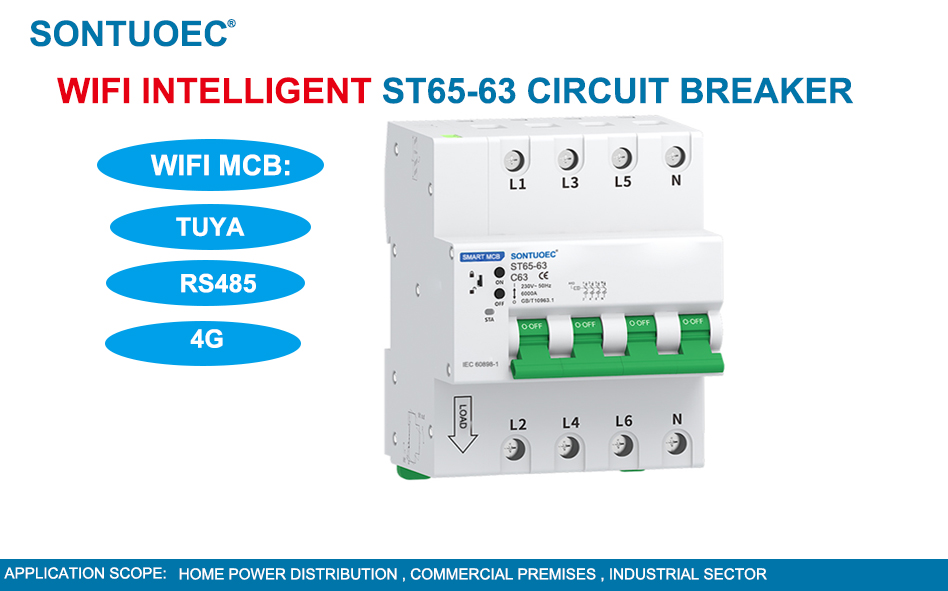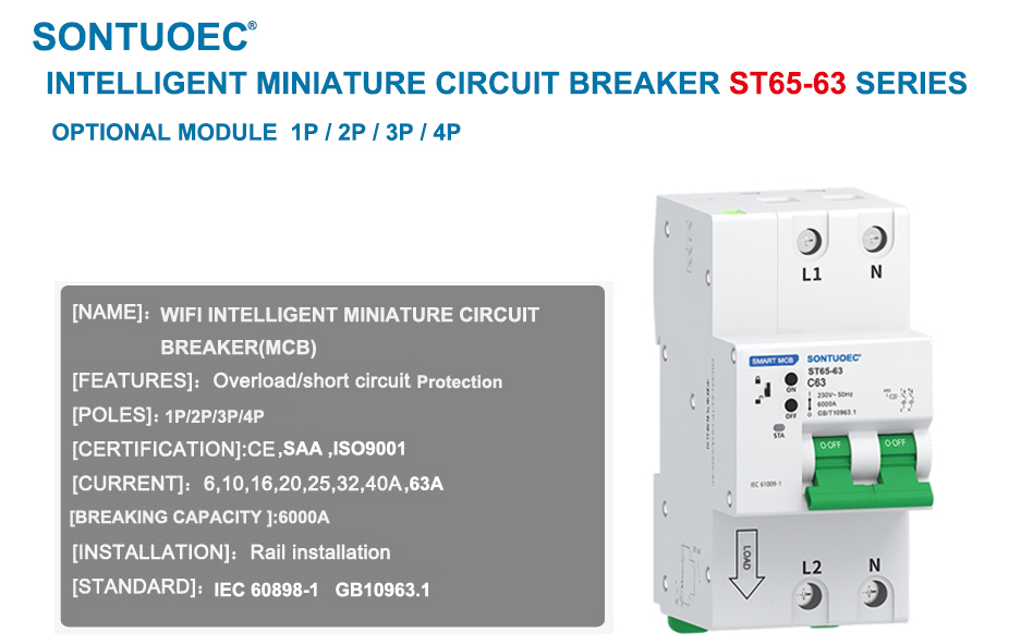 SONTUOEC je jedan od kineskih dobavljača/ proizvođača specijaliziranih za proizvodnju različitih malih električnih uređaja ST65-63 je višenamjenski inteligentni prekidač koji proizvodimo koji integrira funkcije mjerenja električne energije, preopterećenja, kratkog kruga, prenapona i napona, propuštanja, prenamjene i tako zatvaranja, na daljinu. WiFi RS485 Višenamjenski IoT inteligentni MCB RCBO inteligentni prekidač mikro kruga može se široko koristiti u mjestima za upravljanje pametnim napajanjem kao što su trgovina, poljoprivreda, bolnice, hoteli, mjesta za zabava, stanice, kulturne relikvije, upravljanje urbanim ulicama, i upravljanje urbanim ulicama, a također se može koristiti u industriji i u industriji, a također se može koristiti u urbanom upravljanju ulicama, a također se može upotrijebiti u industriji, a također se može koristiti u gradskim upravljanjem i upravljanjem u gradskim svjetiljkama, a također se može koristiti u gradskim ulicama, a također se može koristiti u gradskim ulicama, Mjesta.st65-63 ima funkciju RS485 i preko ili dolje ili dolje za zaštitu napona.